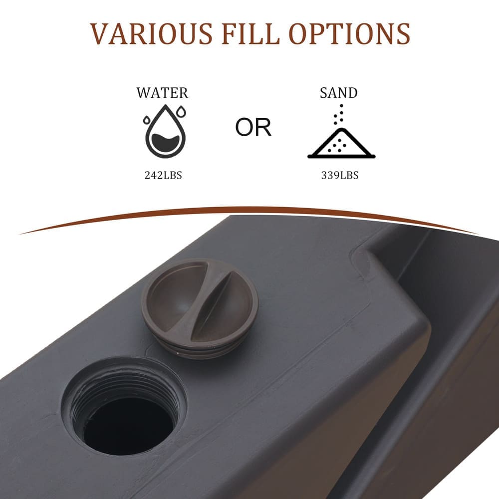 • This outdoor umbrella base is easy to fill with water or sand through large holes.