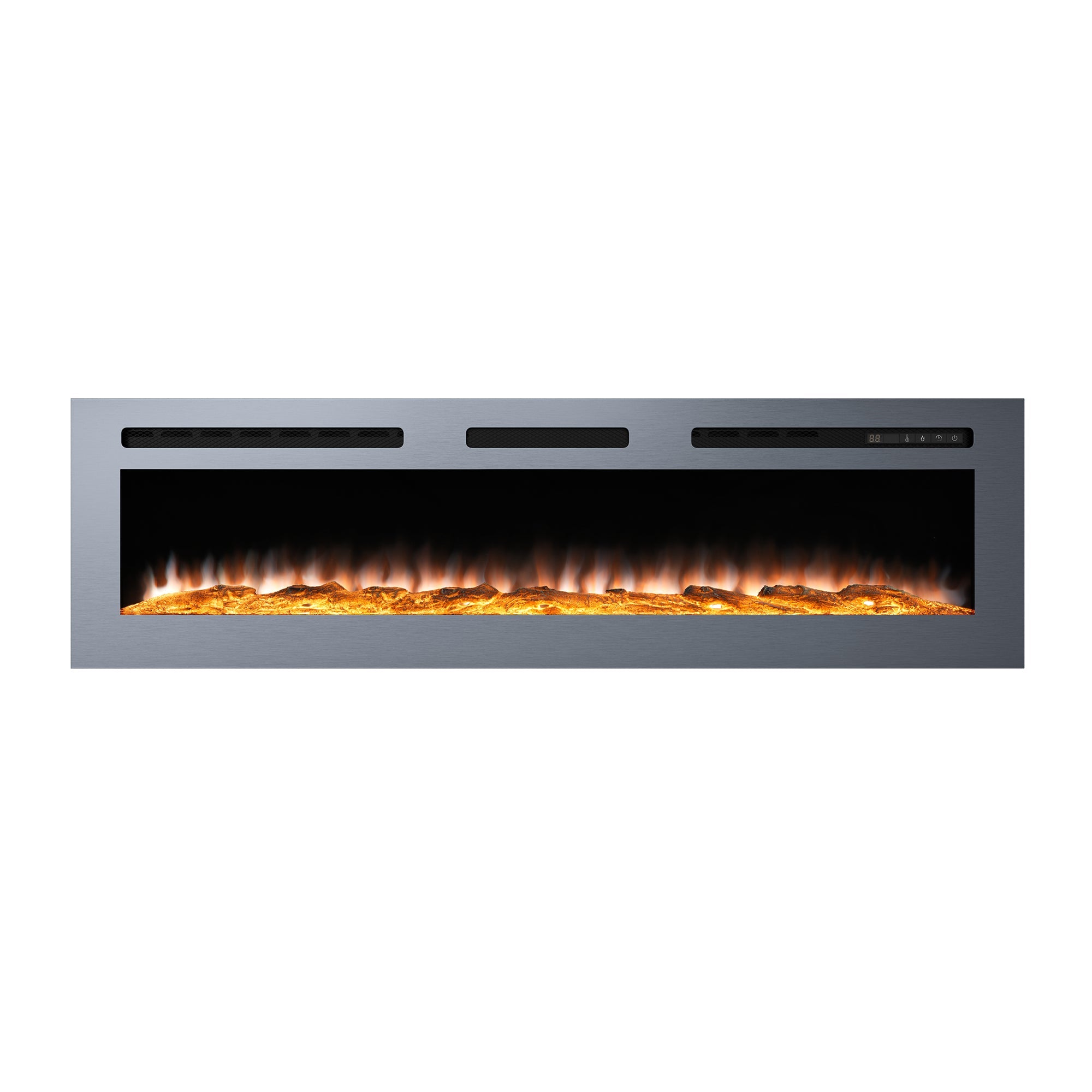 • Electric fireplace can be recessed into the wall or wall-mounted, and the stainless steel surface not only gives the display glass protection, but also adds a modern technological element to the home