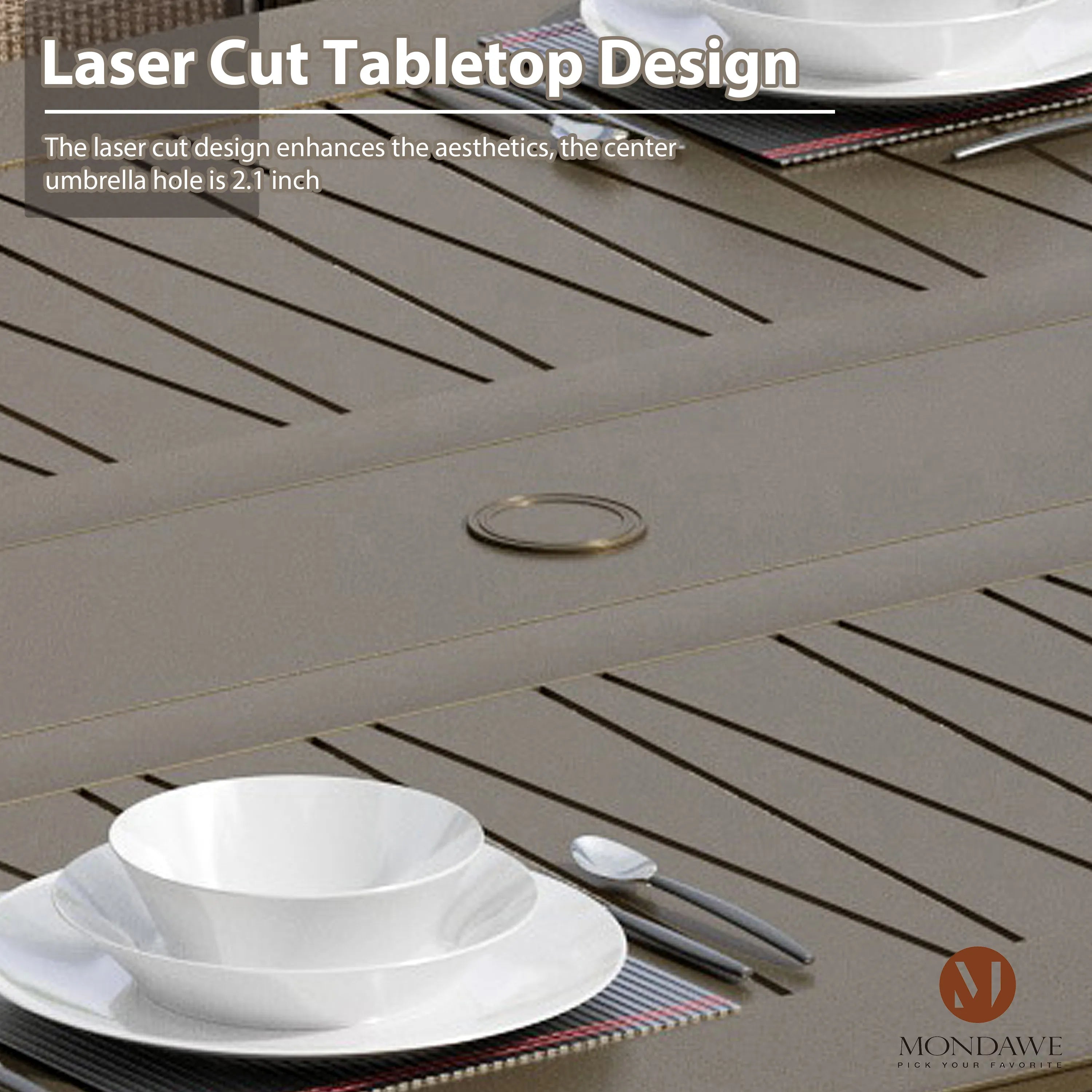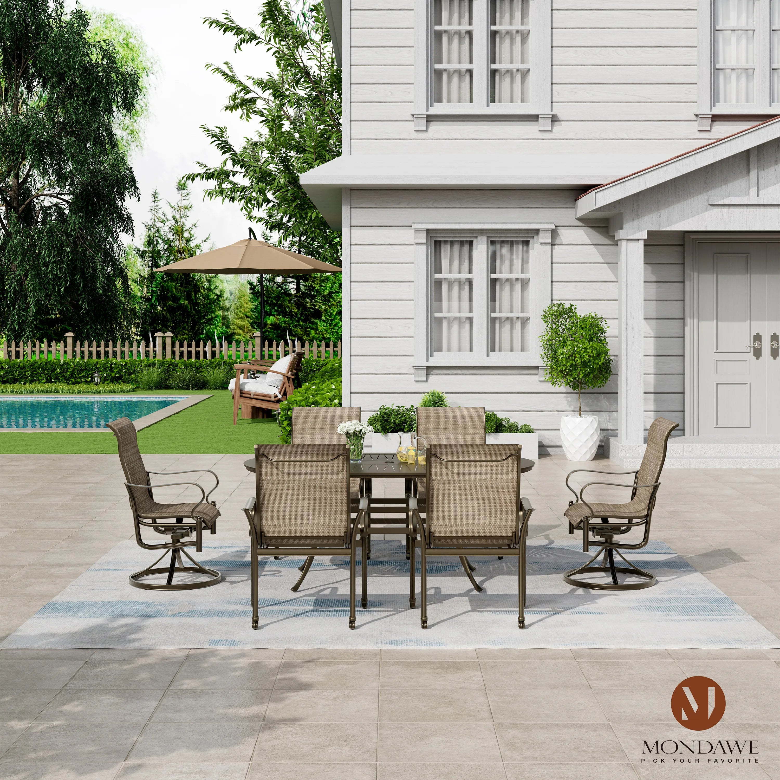 • Dining Set Included: a 72" oval aluminum table with 2.1" umbrella hole, 2 swivel rocking chairs and 4 dining chairs with cushion