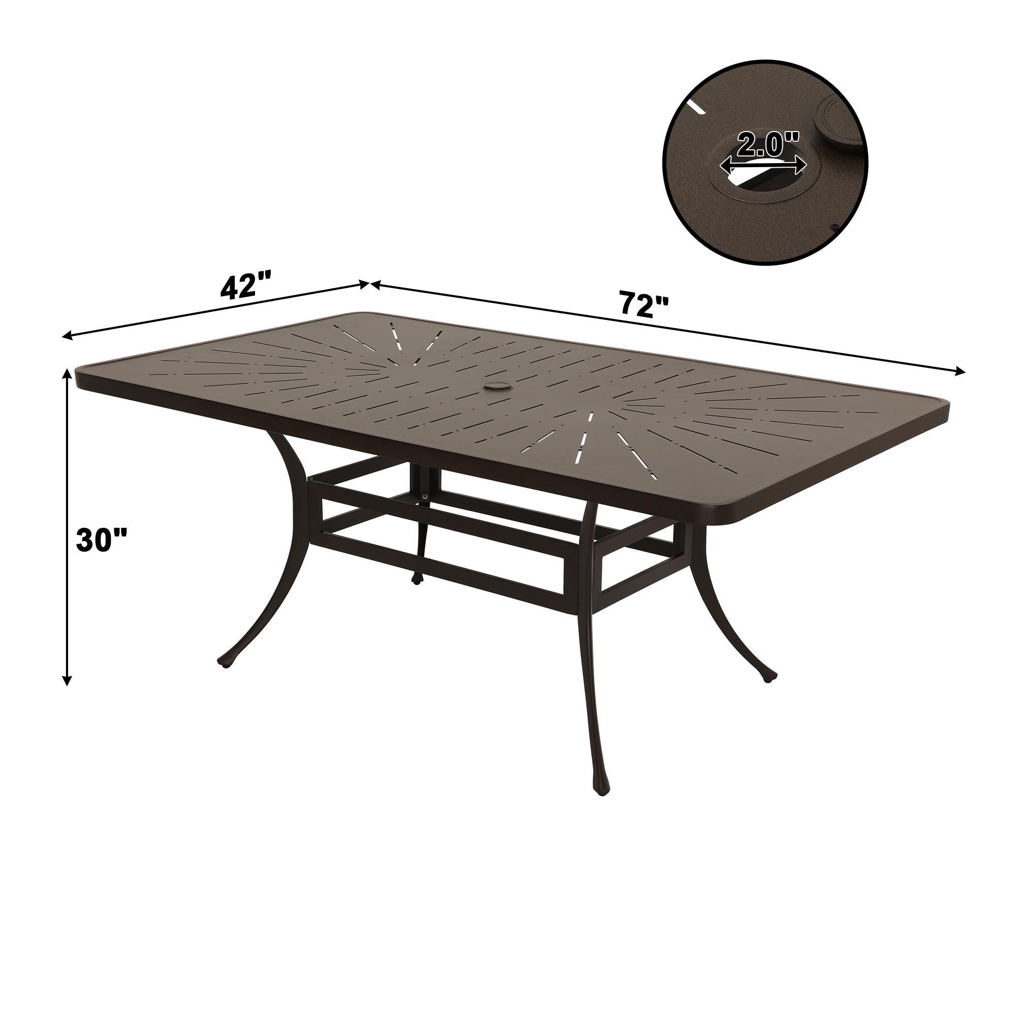 72x42 inch W Cast Aluminum Rectangular Outdoor Dining Table with Umbrella Hole