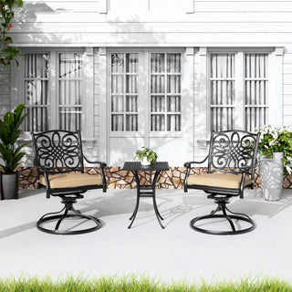 3-Piece Patio Bistro Set – Cast Aluminum Table & 2 Swivel Chairs with Cushions