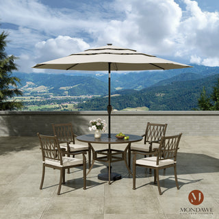 5-Piece Cast Aluminum Patio Dining Set with 4 Textilene Chairs + 48-Inch Round Table with Umbrella Hole - Weather-Resistant Outdoor Set